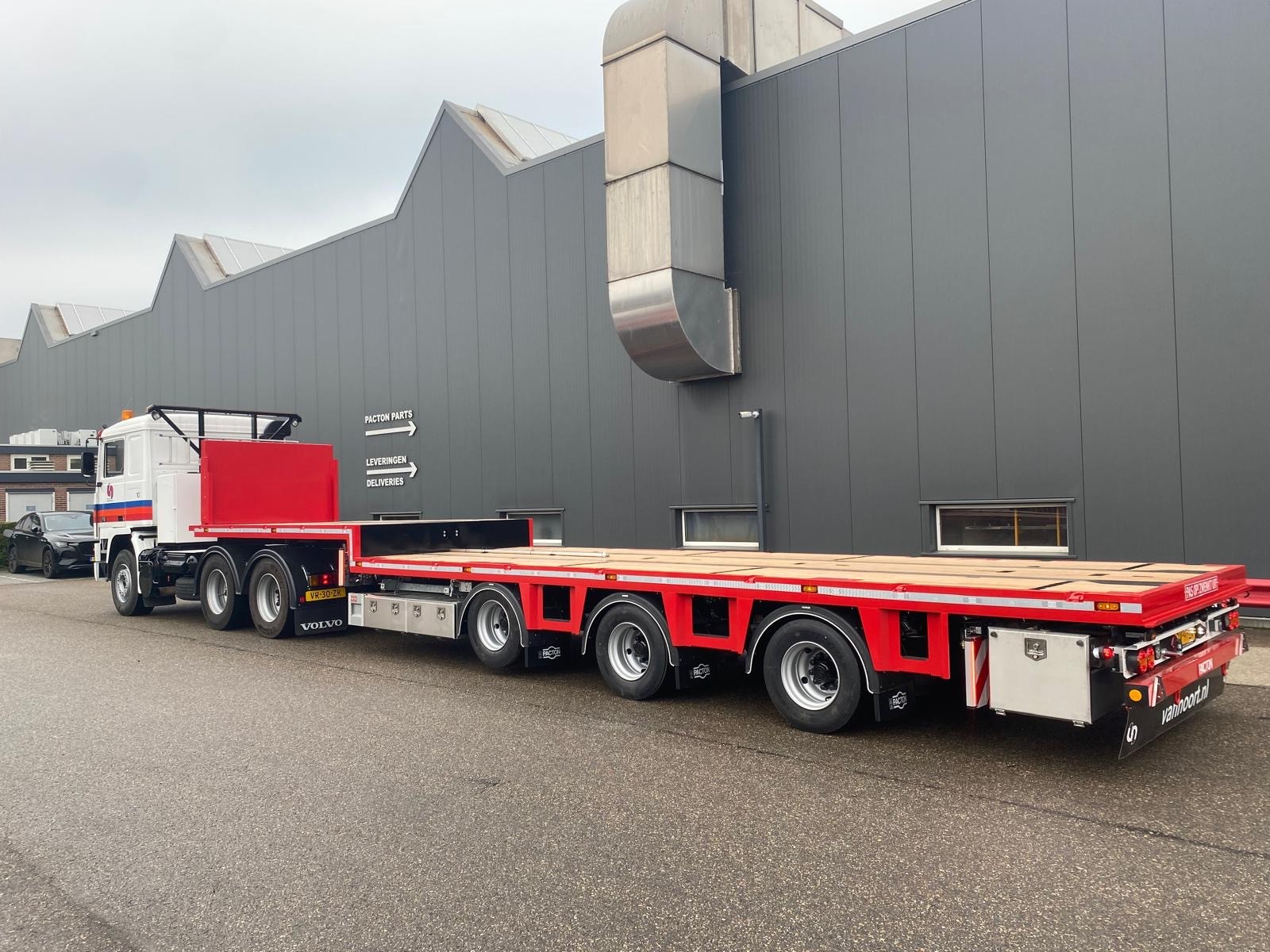 Pacton stands for quality and we owe that characteristic largely to their step deck trailers. By executing the chassis with a goose neck, a super low loading platform is created behind the goose neck which allows for a loading height of about 3.20 metres. Special reinforced open executions are available for the transportation of machinery or heavy material and can also be delivered in the extendable variant.